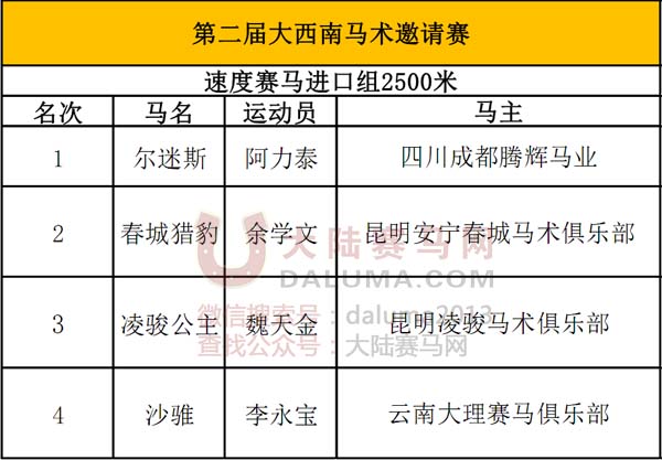 第二届大西南马术邀请赛速度赛马纯血组成绩