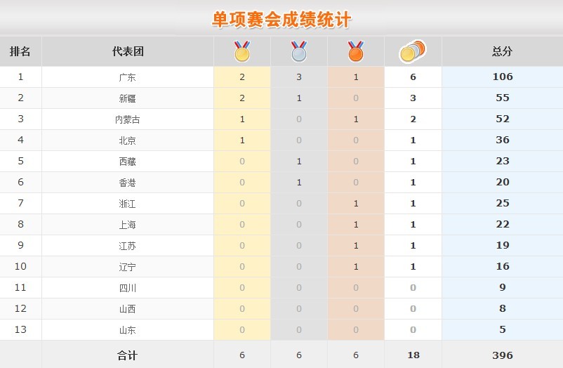 9月6日盛装舞步团体赛中,新疆队夺金,广东队、浙江队分获银、铜牌。这个冠军是新疆马术队16年后再次在全运会盛装舞步团体项目上夺金。在6日的团体赛共有5队较量,每个代表队有4名骑手参赛,四川和北京分获第四、第五名。