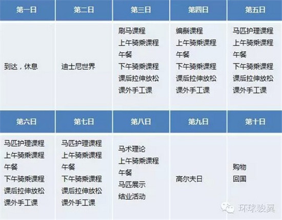 而我们此次项目,除了马术主题外,如您需要,还将为您安排如“迪士尼世界”、全球闻名的“PING高尔夫球场及学院体验”、“海洋世界”、“野生动物乐园”、“购物”等等经典旅游休闲度假内容。