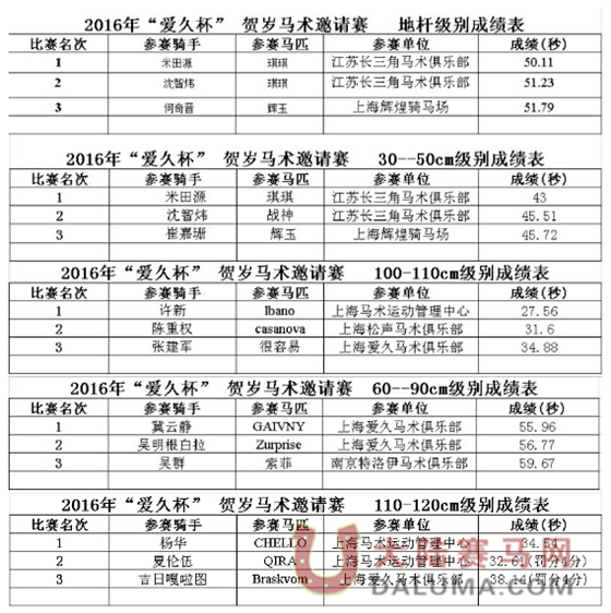 本次爱久杯贺岁马术邀请赛的比赛结果如下: