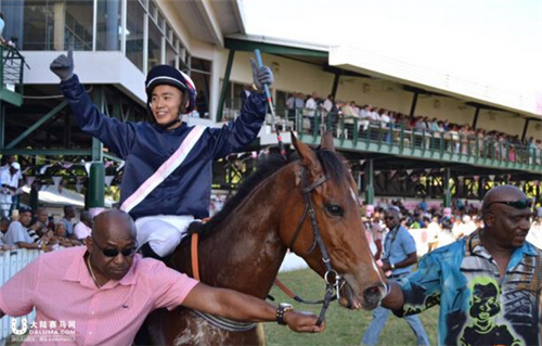 始于1845年的巴巴多斯速度赛马历史悠久,而上周六CHC中国骑师的夺冠也是当地近111年的赛马历史上首次由中国骑师斩获赛事胜利。这一突破性的荣耀时刻赢得了全世界观众的欢呼同时,也被国际各地的媒体争相报道。当覃勇骑着冠军赛驹返回看台前向观众致意时,场上爆发出了雷鸣般的掌声与欢呼。巴巴多斯总理弗兰多·斯图尔特阁下(FreundelStuart)以及包括戴历克·史密斯(DerrickSmith)和艾伦·拉姆齐(AlanRamsey)在内的国际知名马主和来自美国的马里奥·皮诺(MarioPino)、来自加拿大的帕特里克·赫斯本德(PatrickHusband)等世界知名骑师与爆棚的现场观众,共同见证了这一里程碑般的重要时刻。