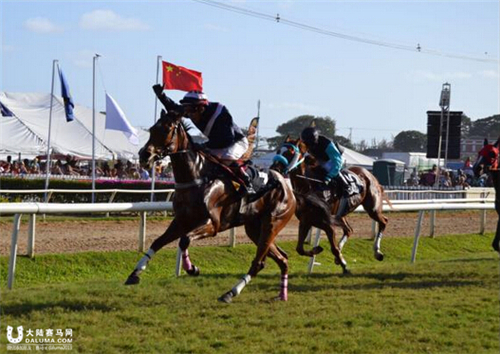 在加勒比海岛国巴巴多斯的赛场上,五星红旗迎风飘扬,映衬着CHC杰士马主俱乐部(以下简称“CHC”)中国籍明星骑师覃勇于2016年3月5日在巴巴多斯桑迪雷恩金杯赛(SandyLaneGoldCup)赛事日上骑乘着冠军赛驹并挥舞右手欢呼胜利的历史性一刻。中国骑师在国际纯血速度赛事上夺冠,为中国速度赛马行业挺进世界舞台迈出了掷地有声的重要一步。