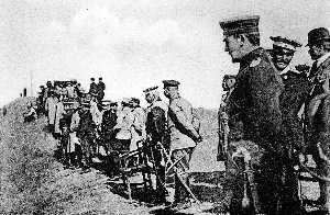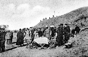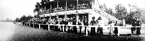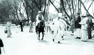 八国联军占领北京后,联军总司令瓦德西(中)来到跑马场观看赛马比赛,当时看台还没有修好。