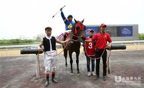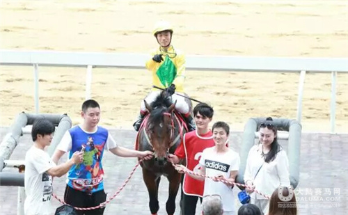 第五场1800米二/三班纯血赛事,骑师刘三平策骑 “大丈夫”登顶。