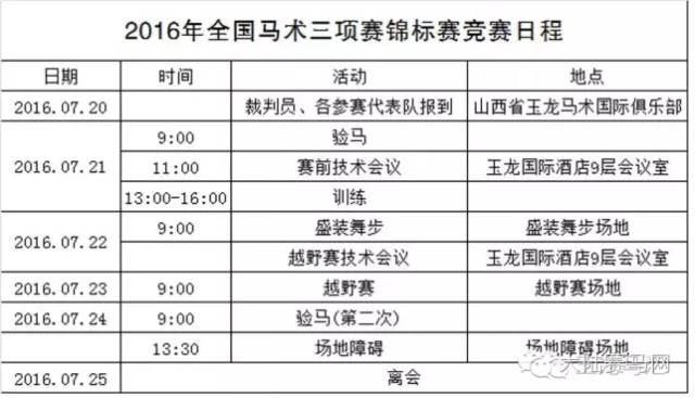 7月24日13:30—16:00,各代表队和骑手将会参加2016全国马术三项赛锦标赛最后一日场地障碍的比赛,届时年度最盛大的三项赛冠军将会揭晓!