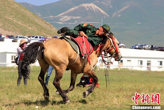 新疆和静“马背”民兵连那达慕大会上秀“马技”