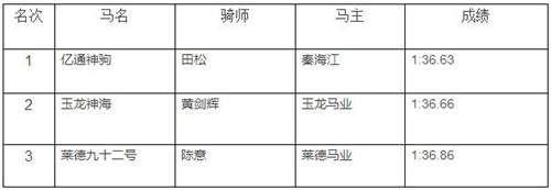 2016“广厦新秀杯”2岁纯血马1100米赛果