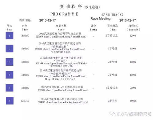 2016年12月17日,武汉速度赛马年度决战将鸣铃开闸,六场岁末大战,69匹国内顶尖赛驹宣布出赛。“年度马王”、“年度冠军骑师”、“年度最佳马主”、“年度最佳练马师”等四大桂冠,赛后旋即揭晓,花落谁家,王者何处,周六抵定天下。