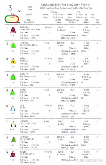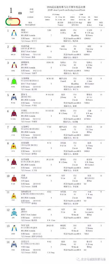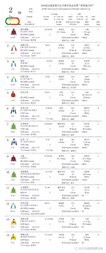 第一场 2016武汉速度赛马公开赛年度总决赛 3岁及以上 1200米赛事