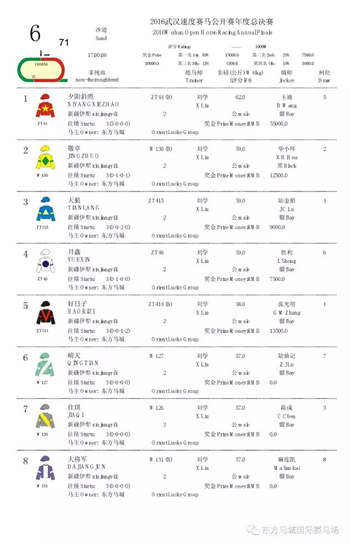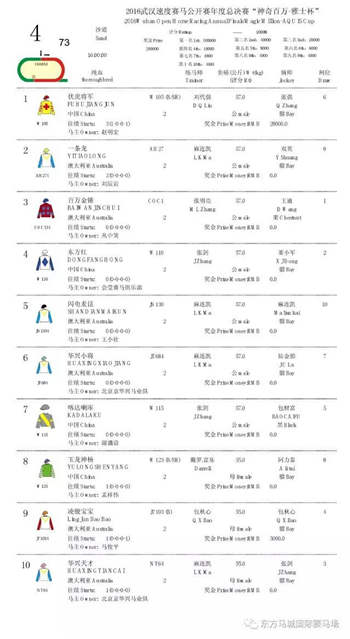 第六场 2016武汉速度赛马公开赛年度总决赛 非纯血组 2岁马组 1000米赛事
