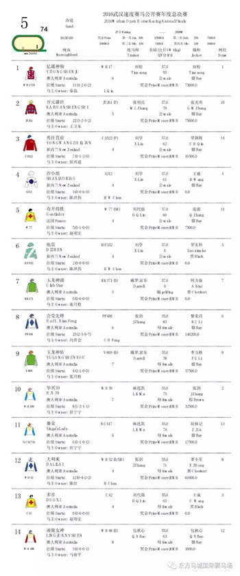 第五场 2016武汉速度赛马公开赛年度总决赛 3岁及以上 2000米赛事