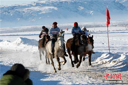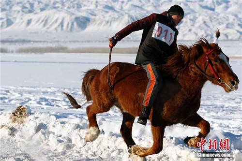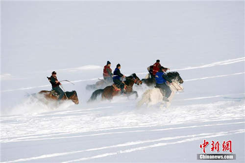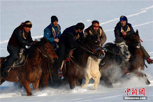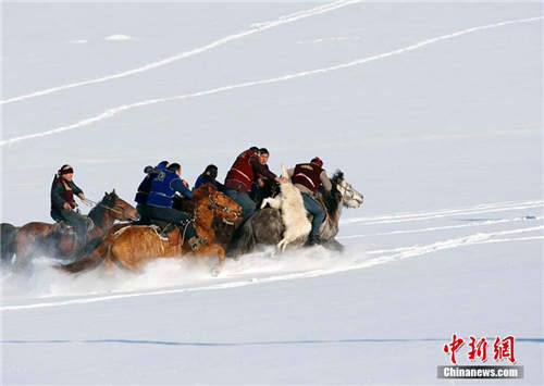 1月19日,新疆布尔津县农牧民冬季运动会开幕,激情上演哈萨克族刁羊、赛马等传统运动项目,布尔津县冲乎尔镇农牧民在零下25度天气里,激情四射,半米深的雪地里,玩起刁羊传统运动项目,现场吸引国内外游客一万余人驻足欣赏精彩节目。