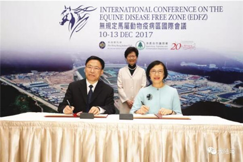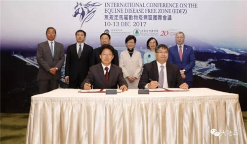 无规定马属动物疫病区国际会议12月12日开幕,香港特别行政区政府与内地政府于会上签署四份合作备忘录,就规管广州市从化区的生物安全区的运作,以及马匹来往香港及马会新建的从化马匹训练中心的相关运送安排,强化有关政策及程序。该生物安全区是内地唯一国际认可的马匹无疫区。从化马匹训练中心将于2018年8月启用,签订合作备忘录有助支援中心的运作需要,进一步推动香港赛马的发展。此次会议由香港赛马会及香港渔农自然护理署合办。