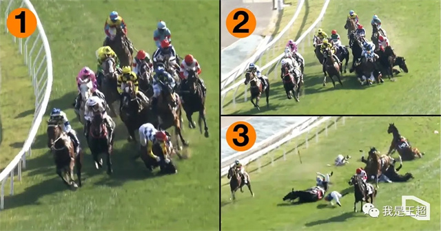 回看本次事故发生的赛事视频,事故发生在比赛进行到最后一个弯道时,前方领放的马匹“君达星”突然失蹄跌倒,导致骑师希威森被抛下,随后引发了一系列连锁反应,影响后方包括“表之未来”、“肥仔叻叻”、“妙发灵机”等多个人马组合,因此,导致此次事故的关键点就是“君达星”的出赛。