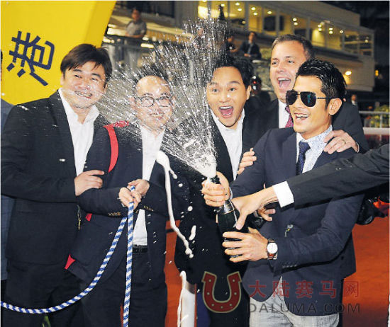 马主郭富城、张智霖的赛马“爱将”夺冠后两人忘情庆祝