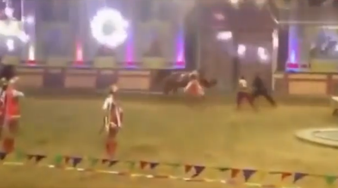 残忍!骑手马术表演中被疯狂拖拽(视频)