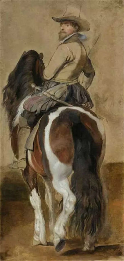 这幅画的重点在于马本身的平衡和姿态,仔细观察这匹马的腿部,左后腿抬起; 骑手平静的坐在马鞍。鲁本斯非常忠于骑马,这些作品不仅仅展现了他的作品精湛,同时也体现了他对马匹和马术的深刻理解。