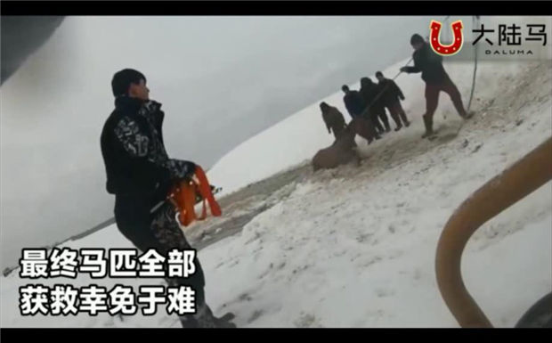 青马网(www.qingma.org)讯 近日,俄罗斯一农场内7匹马踏破冰面落水,刺骨的河水和无法着力的冰面,让这些马儿面临灾难时刻。幸运的是农夫及时发现,迅速召集同伴前来救援,并且找来拖拉机将马匹从冰窟冷水中救出。战斗民族“快准狠”的救援,确保了马儿全部获救。
