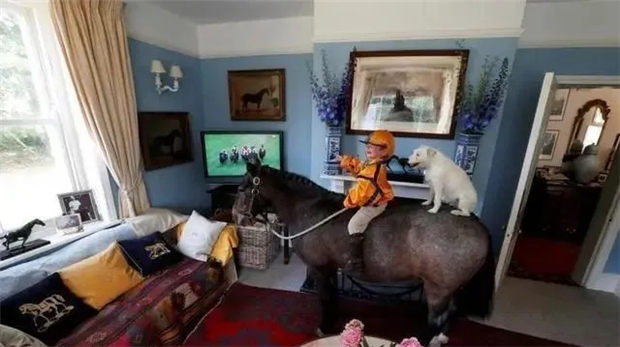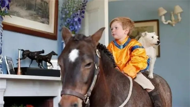 大陆赛马网讯 当地时间6月17日,英国皇家赛马会如期举行,由于受到新冠疫情的影响,赛马会禁止观众入场,无数马迷只能通过收看现场转播体验赛事氛围。英国一名3岁男孩在家里穿好赛马骑师服,骑着小马在客厅里观看赛马比赛。
