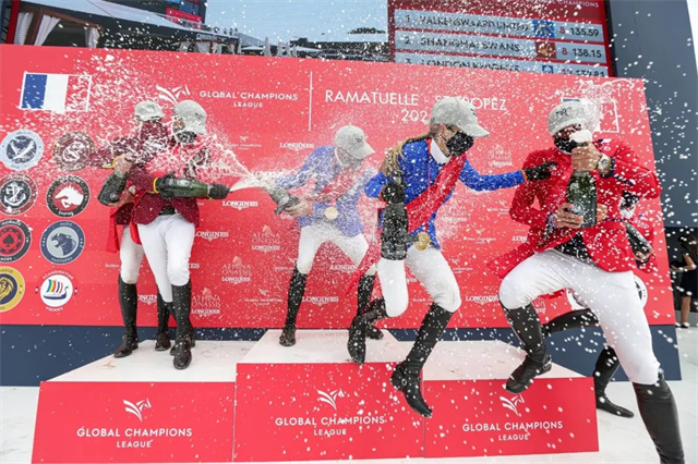 法国当地时间5月29日,2021浪琴环球马术冠军赛(LGCT)圣特罗佩站在拉马蒂埃尔的度假胜地庞普洛纳海滩展开收官日的争夺。在五星级环球团体冠军赛(GCL)第二轮的争夺中,由佩德·弗雷德里克森(Peder Fredricson)和埃德温娜·托普斯-亚历山大(Edwina Tops-Alexander)组成的瓦尔肯斯沃德联合队以2.55秒的时间优势击败由克里斯蒂安·阿尔曼(Christian Ahlmann)和马克斯·库那组成的上海小天鹅队成功登顶。
