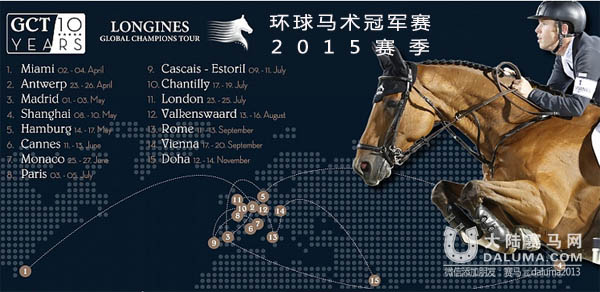 环球马术冠军巡回赛创办人、奥运会金牌得主、荷兰著名骑手Jan Top说:“2015年将是里程碑的一年,迈阿密和罗马的加入,是我们赛事十年间影响力持续扩大的一个体现。”