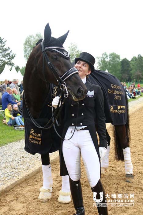 德国球星穆勒妻子马术职业赛首秀夺金牌 鞍前马后全程陪伴