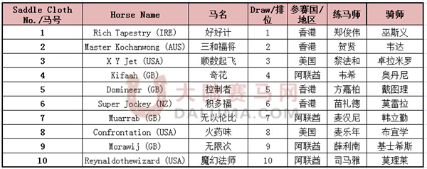 海外赛事第一组 第三场  晚上10:45     10匹参赛马