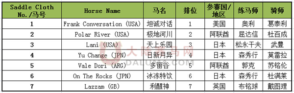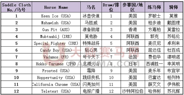 海外赛事第一组 第六场  凌晨1:00     12匹参赛马
