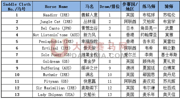 海外赛事第一组 第二场  晚上10:10     13匹参赛马