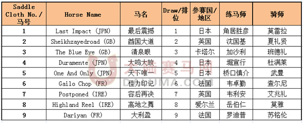海外赛事第一组 第五场  凌晨12:20     9匹参赛马