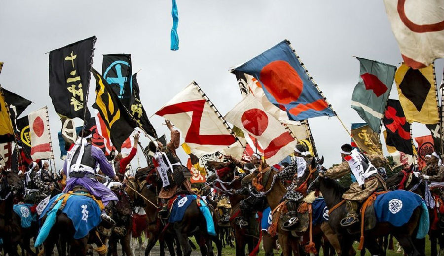 当地时间2016年7月24日,日本福岛南相马市举行了传统马赛“相马野马追”活动,450名参赛者身穿传统服装在马背上竞速。这一个为期3天的活动吸引了数千人观看。