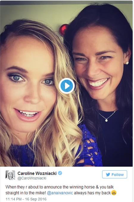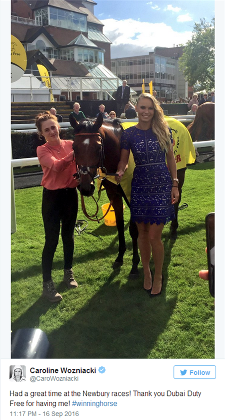 9月18日消息,16日周五伊万诺维奇和沃兹尼亚奇受邀来到英国观看赛马比赛。迪拜免税店国际赛一直是英国赛马季的焦点大战之一。伊万沃兹受邀出席赛马活动为赞助商拍宣传大片。这次,两位前世界第一球员作为迪拜免税店全球宣传大使来到纽伯里为官方拍摄图片,其中包括和冠军骑师Ryan Moore合影。