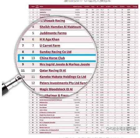 CHC杰士马主俱乐部名列全球最佳马主第九位