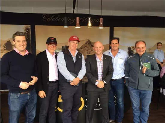 澳宏育马房首席执行官汤姆·莱利、CHC杰士马主俱乐部主席张祖德、殷利殊拍卖行执行总监马克·韦伯斯特、新南威尔士州第一产业及贸易部长尼尔·布莱尔阁下、澳宏育马房暨维顿马房主席安东尼·汤普森、高多芬集团的亨利·普伦特阁下(左至右)