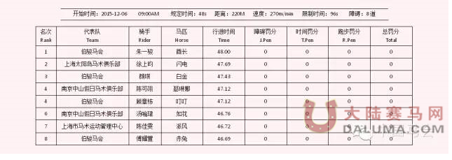 2015“伯骏杯·中国马会青少年马术精英赛”成绩公告如下: