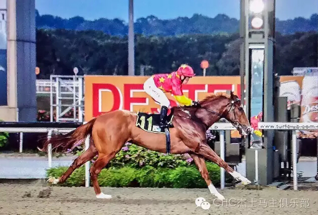 7月1日,CHC杰士马主俱乐部驻新加坡的新星赛驹“天行者”(skywalk,父:battle paint,母:daystar)在当天一场2-3岁马1100m首秀赛中胜出近4个马身夺冠,显示出极大潜力!“天行者”自新西兰购入至新加坡,目前状态极佳,有望出赛新加坡的顶级级别冲刺赛。