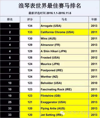可以看到,11月国际赛马组织联盟公布的最新一份世界最佳赛马排行里,CHC杰士马主俱乐部拥有的五匹精英赛驹榜上有名,而且为联合马主会员们驰骋在南北半球的多个发达赛马国家。