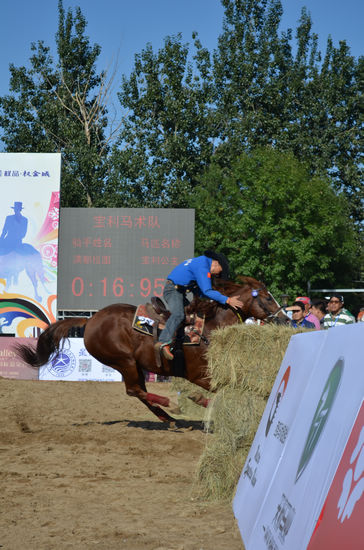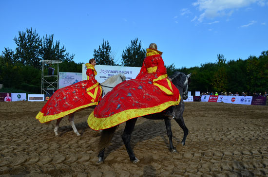 | 来自欧洲的美女骑师为现场观众表演精彩骑术 |