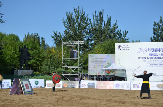 | 马术嘉年华安排丰富多彩的表演内容 图为射术表演 |