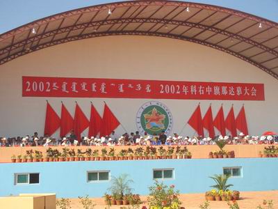 2002年8月,科尔沁右翼中旗政府首次在这里举办了隆重热烈的草原那达慕大会。共有17个代表队,774名运动员,19只马队,270匹赛马,参加了17个传统项目的角逐。应邀前来的北京,吉林,辽宁等省市和海外宾朋达5000余人,观众达28.8万人次。中央电视台,福建东南台,大连电视台和沈阳电视台等百佘名记者到会采访。大会得到了各界宾朋的广泛赞誉,认为这不仅是一次体现民族团结的聚会,更是一次展示形象,宣传科尔沁草原,广交朋友,广招客商的草原盛会,同时也表现了科尔沁草原各族人民宽阔的胸怀和热情好客的性格。