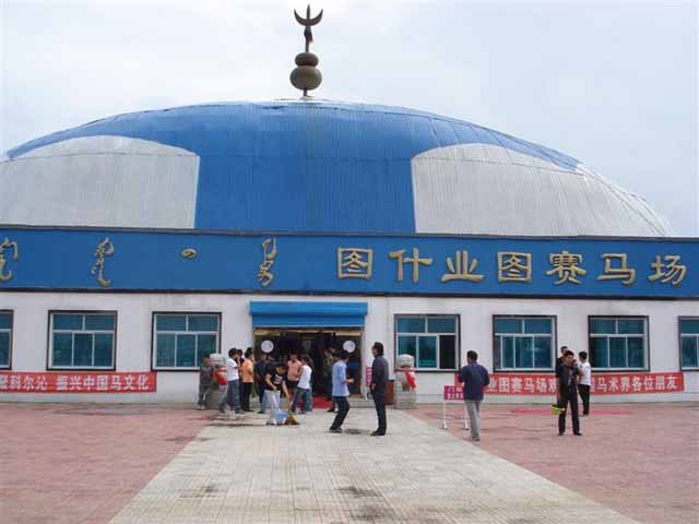 图什业图赛马场总占地面积50万平方米,主体建筑面积13.7万平方米。主席台为大型蒙古包弧顶造型,有240个座位,还建有200平方米的贵宾休息室。主席台两侧为6600个座位的观礼台,四周设立的观众站台可容纳8万名观众。场内设有内外护栏保护的1000米赛道,以及射箭、博克、布鲁场地。赛马场前为总面积2.5万平方米的两个商业区。门前广场上有“五畜兴旺”、“飞马”等雕塑,以及大型彩虹门。整体建筑布局新颖,别具一格,体现了民族传统与现代时尚的统一。