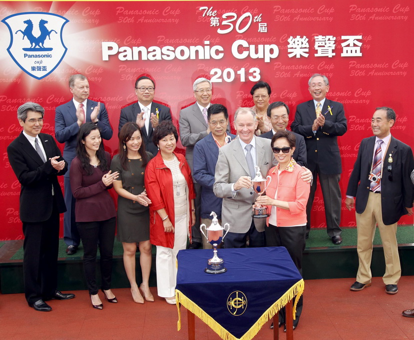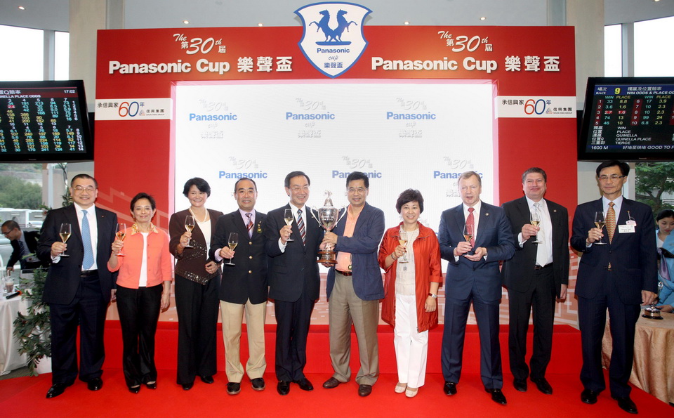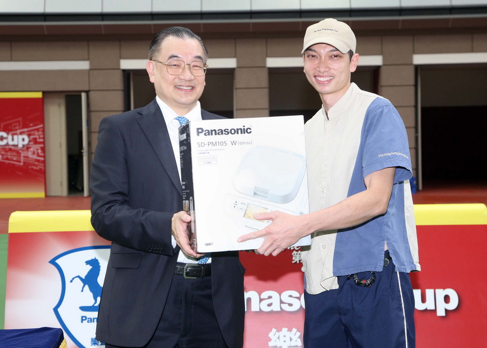 乐声杯冠军“旗帜鲜明”的马主于祝酒仪式上获赠Panasonic IH蒸气磁应西施电饭煲一部。