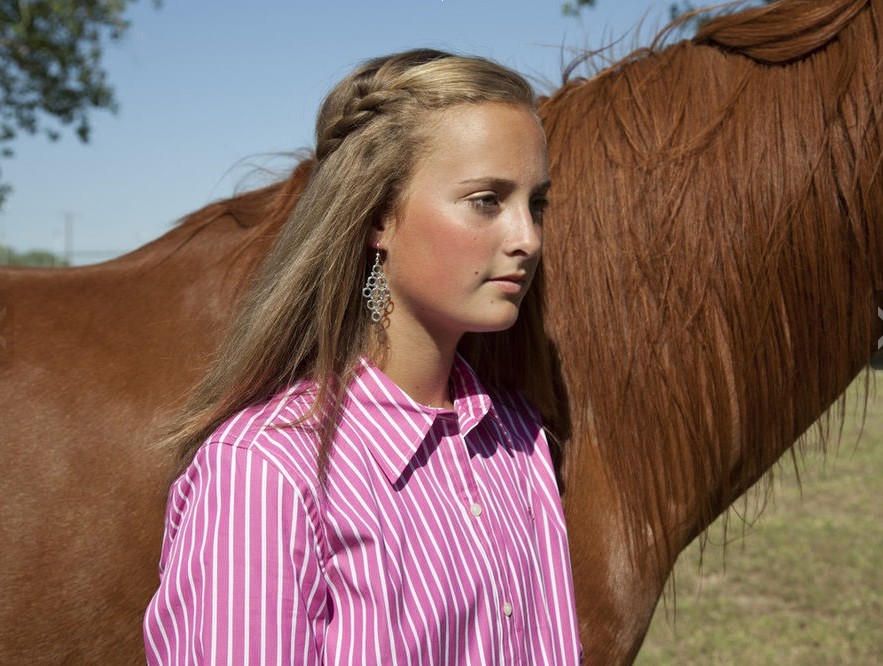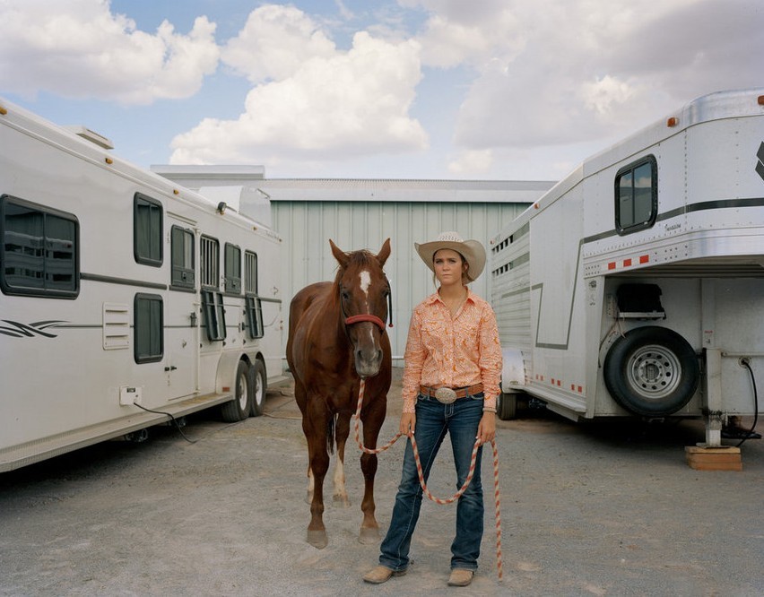 照片中的年轻女孩是美国德克萨斯州的马术竞技者,由摄影师Ilona Szwarc拍摄。照片系列名为“马术竞技女孩”(Rodeo Girls)。摄影师表示,这些女孩对女性应该扮演什么样的角色有着非常不同的看法。她们参加人们习惯上认为是为男性专属的活动,她们拥有强大的身体力量并且证明了她们对动物的驾驭能力。