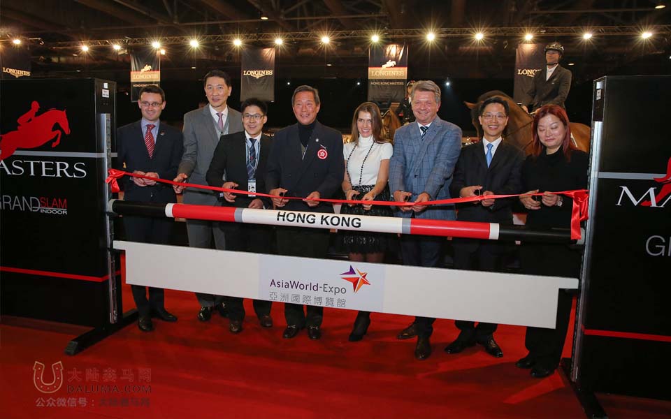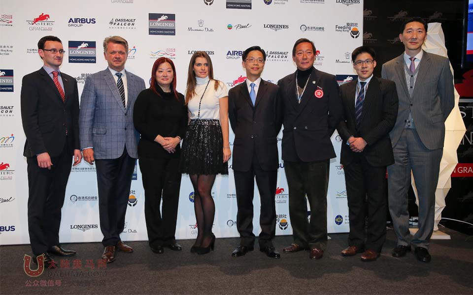 EEM Asia 副总裁 Matthieu Gheyen 先生;EEM World 总裁 ChristopheAmeeuw 先生;LONGINES 香港区副总裁欧阳楚英女士;Fernanda Ameeuw女士;署理商务及经济发展局局长梁敬国先生;香港马术总会主席及会长叶锡安博士;香港“M”品牌体育活动奖首席评判及大型体育活动事务委员会委员霍启刚先生;亚洲博览馆行政总裁哈永安先生