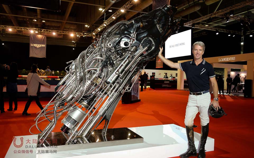 美国骑手 Richard Spooner 与法国艺术家 Pierre Matter 的 Cheval Mecachrome合照。