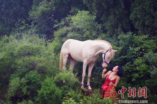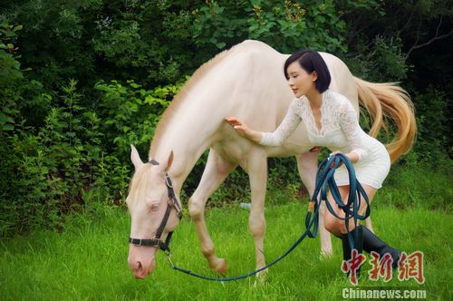 就在近日曝光的一组写真中,杨舒婷在京郊某隐秘的顶级私人马场,亲密接触两匹单价超过五千万的汗血宝马。照片中杨舒婷“御马”范儿性感妩媚,还大胆玩起了和马儿的亲吻,看来钟情马术已经有些年头了。