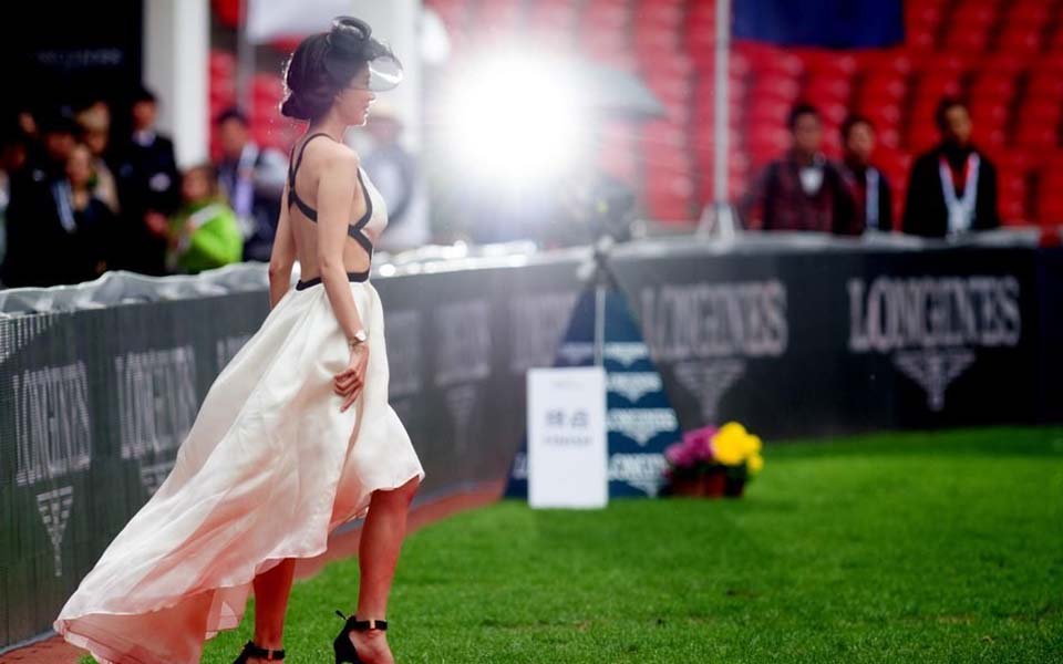 林志玲裸背现身鸟巢北京国际马术大师赛