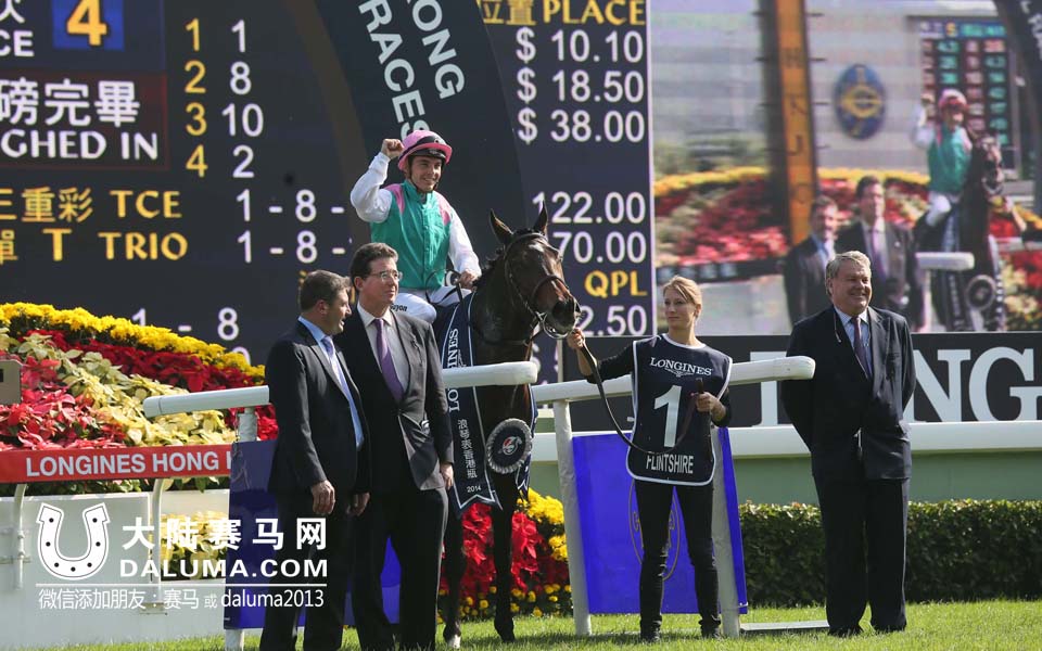 12月14日,列阵一级赛浪琴表香港瓶(2400米)的“富林特郡”,于浪琴表世界马匹排名获评124分,评分较今仗同的所有对手高出至少五分,最终此驹果然不负众望,交出一贯高水平表现力压群雄。这匹法国代表于末段虽被港队赛驹“威利加数”上前威胁,但在短兵相接之下仍能力拒来犯,夺魁而回。