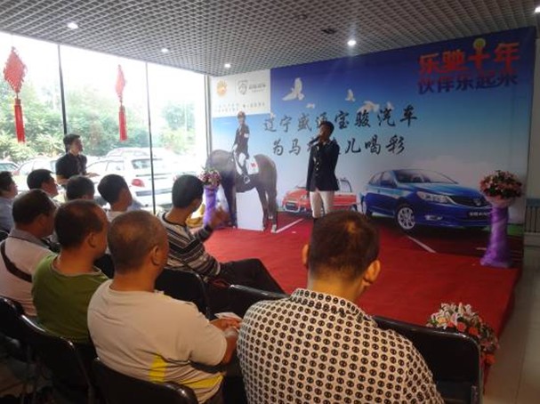 9月12日第十二届全运会马术比赛个人赛冠军梁锐基及中国马术队优秀队员边巴次仁来到辽宁盛通宝骏汽车展厅,与广大宝骏车主及爱马人士进行面对面交流,同时庆祝乐驰在华十年。