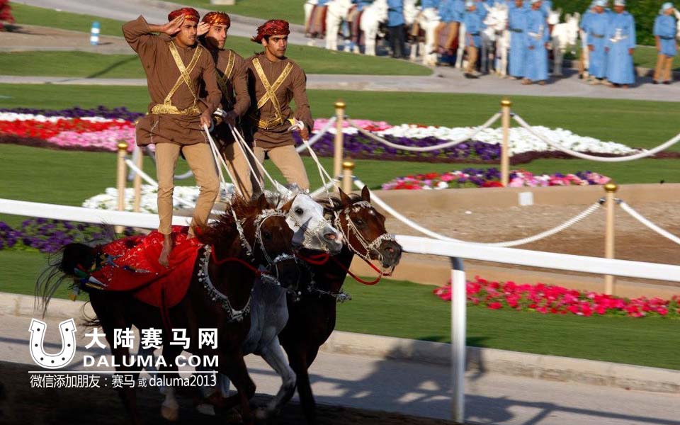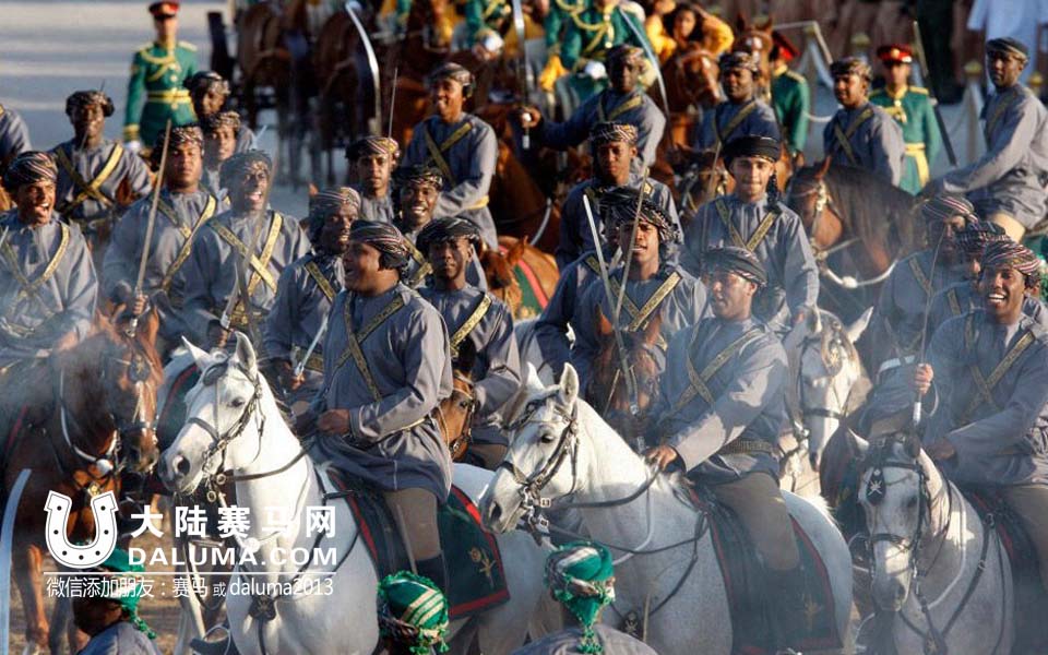 大陆赛马网 > 赛马图库 > 阿曼皇家骑兵表演高超马术 双马齐驱抬